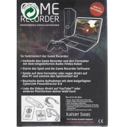 Der Kaiser Baas Game Recorder überzeugt mit schneller Installation und einfachster Handhabung und macht das TV-Gerät nahezu überflüssig. Endlich können Sie Ihre High- Scores und Top-Matches in Bild und Ton festhalten, im mitgelieferten Videoeditor "CyberLink PowerDirector 8.0" nachbearbeiten und Freunde sowie Familie zum Staunen bringen.